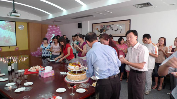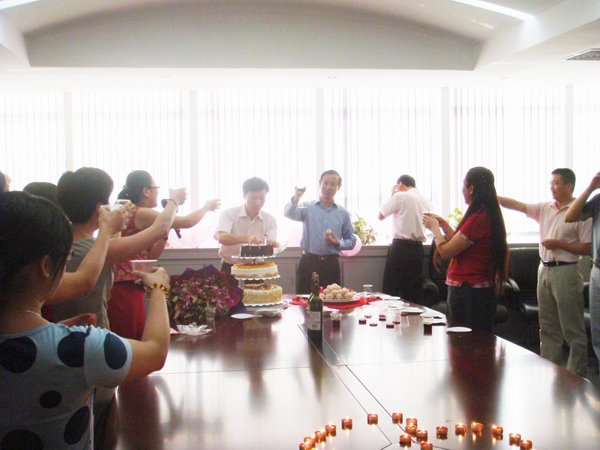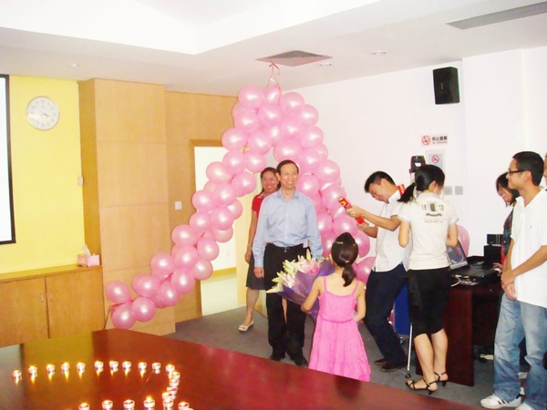 在溫情的八月迎來了華遠集團創(chuàng)始人嚴文亮先生的生日,華遠集團員工自發(fā)為嚴總舉辦了一個神秘而又驚喜的生日Party。粉色的氣球、雙心相交的生日蠟燭、醇香的美酒、誘人的蛋糕,點燃了現(xiàn)場的氣氛也傳遞出了參與者的喜悅。在舉杯共慶之時大家道出了自己內(nèi)心最真誠的祝福。8月份過生日的員工,幸運地同嚴總共同分享這份溫馨與快樂,并合影留念。