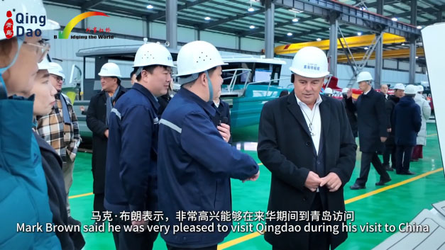 庫克群島總理馬克·布朗來訪新區(qū),參訪青島奧海特船舶有限公司。