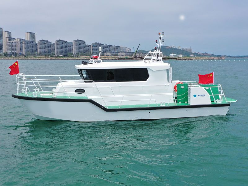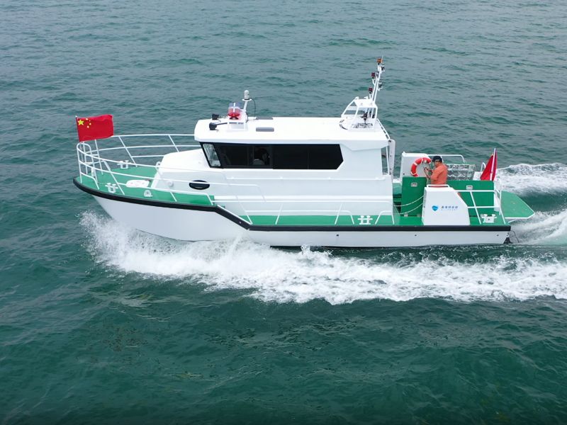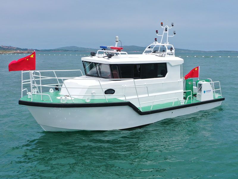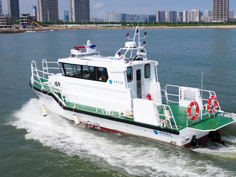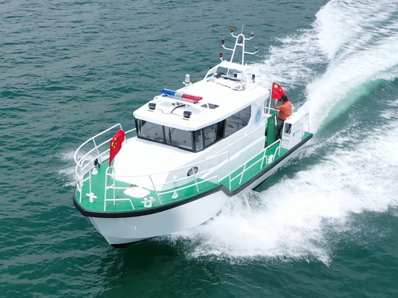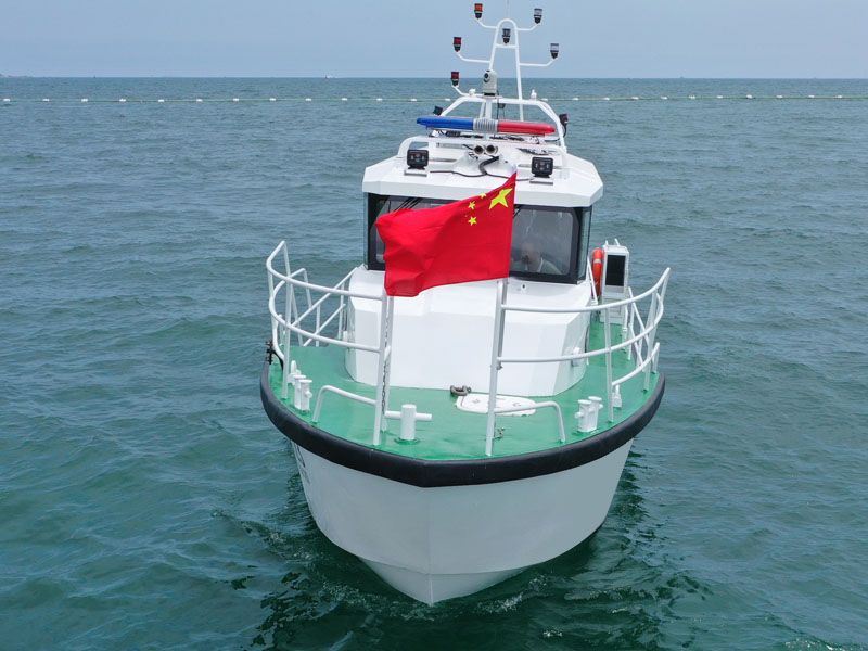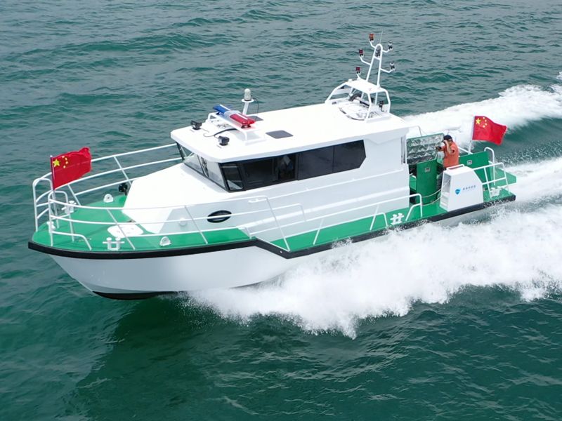 本艇為單體、深V、變角度、單折角、高性能艇型。主艇體及上層建筑均采用船用鎂鋁合金材料制造。采用雙柴油機驅動,雙艉機推進,航區(qū)為A級航區(qū)、J2級航段。配備先進的導航設備、多功能信號燈、高音喇叭、消防救生設備。內設船員艙、辦公區(qū)、衛(wèi)生間等,能獨立擔負起巡查、執(zhí)法、預警和水上救助任務。產(chǎn)品描述