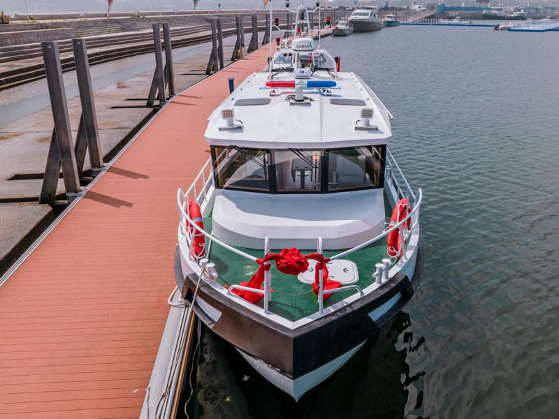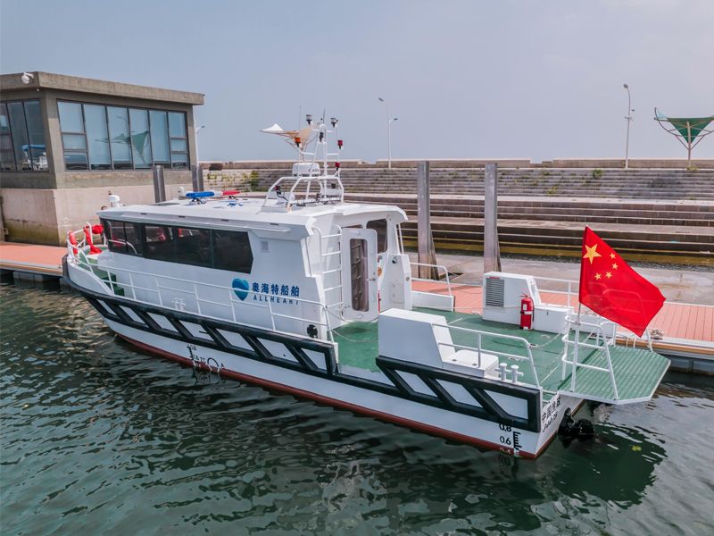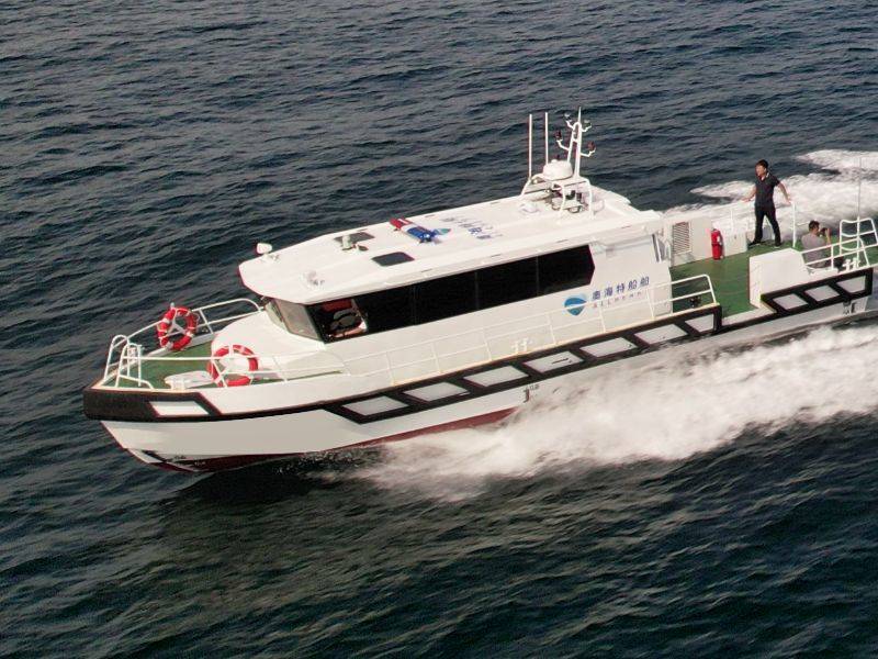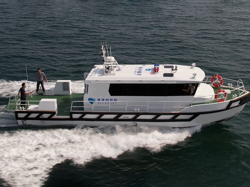 本艇為鋁質、全棚式折角型滑行快艇,具有連續(xù)的主甲板,艉艙內(nèi)安裝2臺舷內(nèi)外機作推進主機,兼操舵作用。主艇體內(nèi)設四道水密艙壁,由艏至艉為帆纜艙,艏尖艙、儲藏室、空艙、油水艙、機艙。本艇航行于內(nèi)河A級航區(qū),主要用作執(zhí)法、巡邏等使用。產(chǎn)品描述