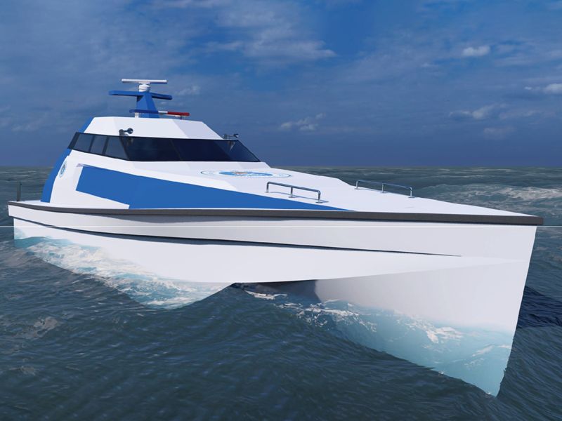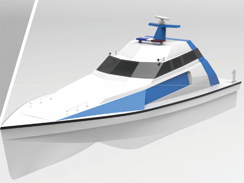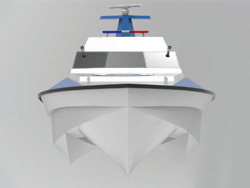 船型采用三體艇型,動力和推進(jìn)系統(tǒng)可采用舷內(nèi)外機(jī)方式或噴水推進(jìn)方式或表面槳方式,雙機(jī)組合,具備良好的操控性。該船型具有優(yōu)于單體船和雙體船船型的耐波性和快速性。Y型槽道三體船既具有三體船所獨(dú)有的水線獨(dú)立船體的特點(diǎn),又具有雙體船左右對稱分布獨(dú)立船體的特點(diǎn),從船型構(gòu)型上天然整合了三體船和雙體船的船型優(yōu)點(diǎn),規(guī)避了兩種船型的缺陷。產(chǎn)品描述