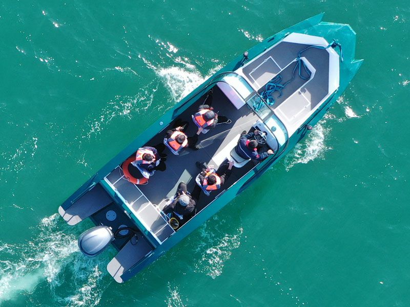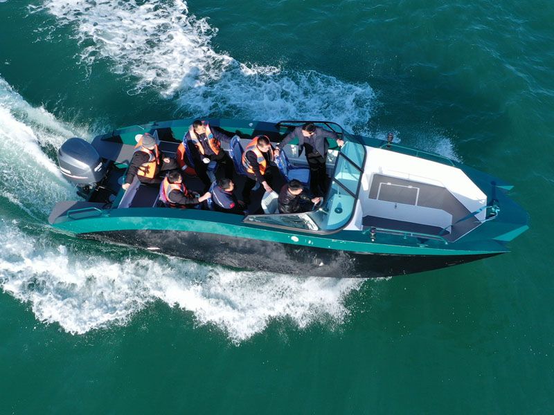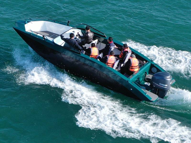 為 V 型底、單甲板,舷外汽油掛機(jī)驅(qū)動(dòng)的折角線型鋁合金快艇。主要用于旅游觀光,航區(qū)為平靜水域營運(yùn)限制。 設(shè)單人座椅 6 張,長條座椅 1 張,座椅上配置安全帶,保證人員安全。 本艇設(shè)計(jì)現(xiàn)代而時(shí)尚,線條流暢,座椅間的空間較大,提高了我們的乘坐體驗(yàn)。產(chǎn)品描述